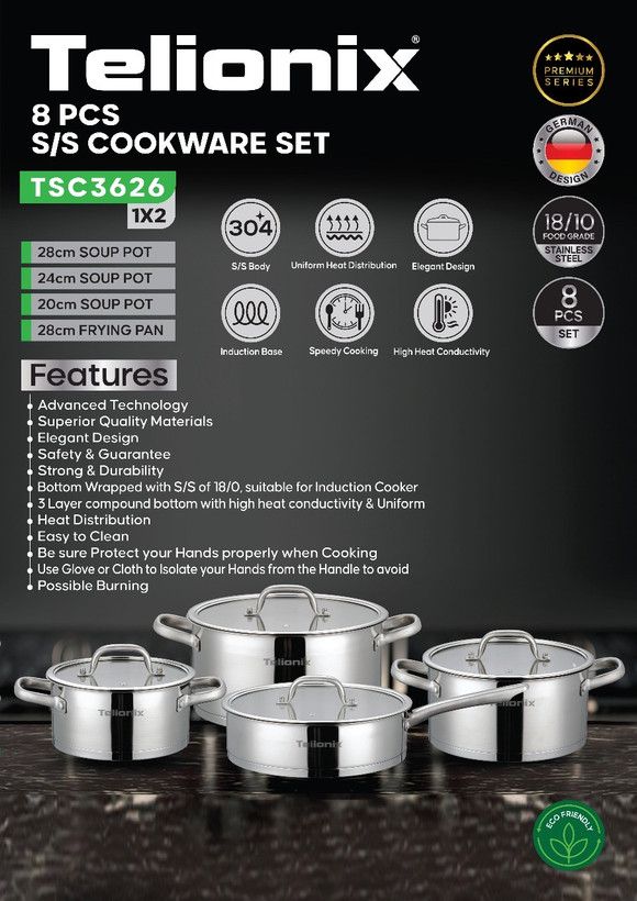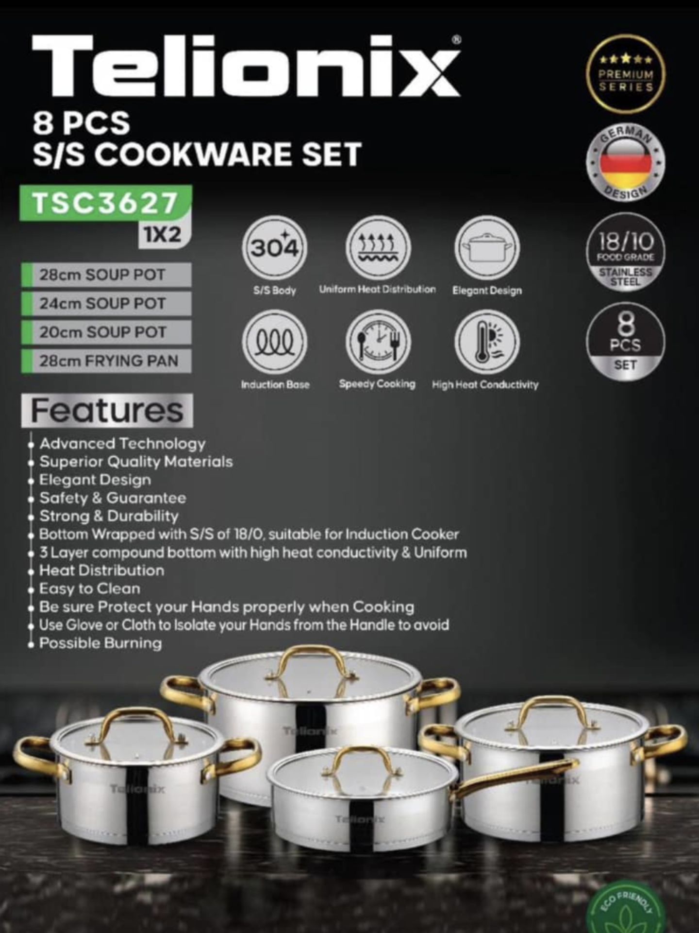 سرویس قابلمه استیل ۸ پارچه برند تلیونیکس